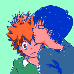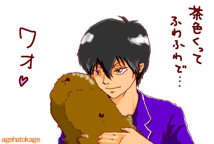 そっと運び込んでおきます。 獄寺とシャマル 並中保健室前 。 バレンタイン翌日。 「おっ、隼人、なんだ? そのでかい紙袋は?」 「なっ、シャ、シャマル! 何でもねえよ!」 一番会いたくない人物に会ってしまう、隼人。 「優しい先生に見せてごらん」 「何で、てめえに見せなきゃならねえんだよ!」 慌てて、後ろに隠そうとした紙袋から、 可愛いピンクの包みが落ちる。 「お、チョコレートか? そういえば昨日、休んでたんだな。」 「うぜえからな、女子が。」 両手のふさがった隼人のあごをぐいっと上向ける。 「それにしても、何でこんなガキンチョに、 カワイコちゃんからチョコレートが集まるのやら。 まだまだ大人の魅力には早いのかぁ? あ、カワイコちゅわ~ん」 「あの、エロオヤジ、言いたい事だけいいやがって。まったく・・・」 まだまだ、自分の魅力には気付くことない、隼人。 以下、じぶんのひとりごと なんか、 草壁さんって、お庭番が似合いそう。 時々、すっと現れて 「殿、これを」 「ああ」 もちろん、殿はヒバリさんね。 白馬に乗って、砂浜疾走してくれ。 暴れん坊ヒバリ。 そのまんまじゃん。 そういや最近の時代劇見てないな。 必殺はちょっと見てみたいかも。 ヒバリさんの誕生日って、5月5日ですが、 某幼児向け教材の、トラのキャラクターも同じ誕生日。 そんなことをぼんやり思ったのでした。